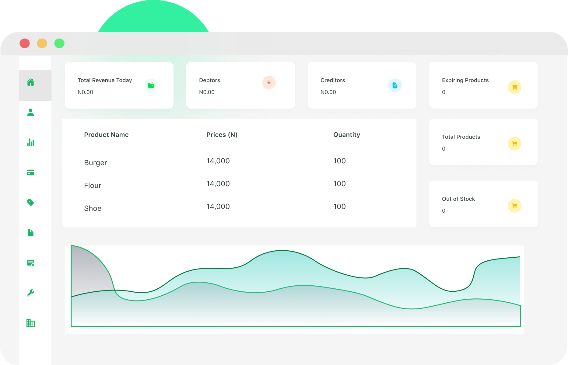 Organize your inventory with vital information like total Products