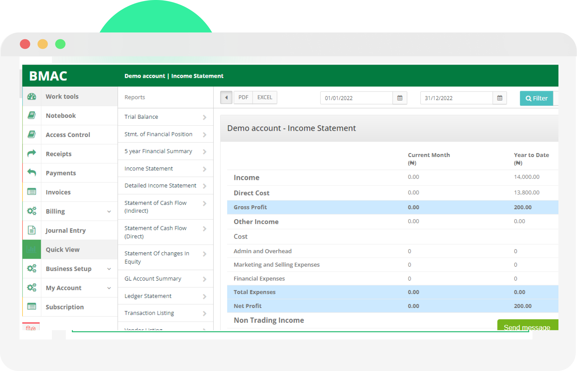 At the click of a button, these reports can be made available to you. The reports are downloadable in PDF format or excel format from BMAC Accounting. We are keen on making everything easy, yet productive, for you.